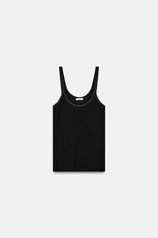 ZARA МАЙКА В РУБЧИК, ЧЕРНЫЙ