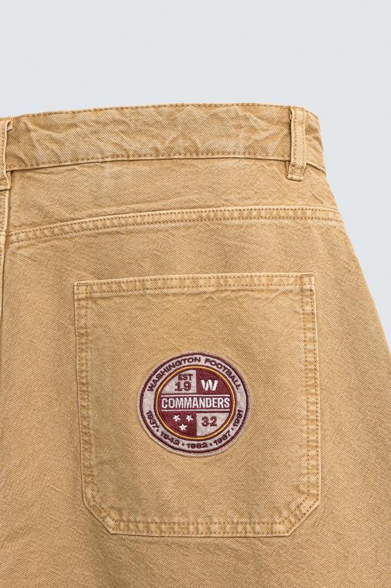 ZARA МЕШКОВАТЫЕ БРЮКИ С ВЫШИТОЙ НАШИВКОЙ NFL WASHINGTON COMMANDERS, РЫЖЕВАТО-КОРИЧНЕВЫЙ