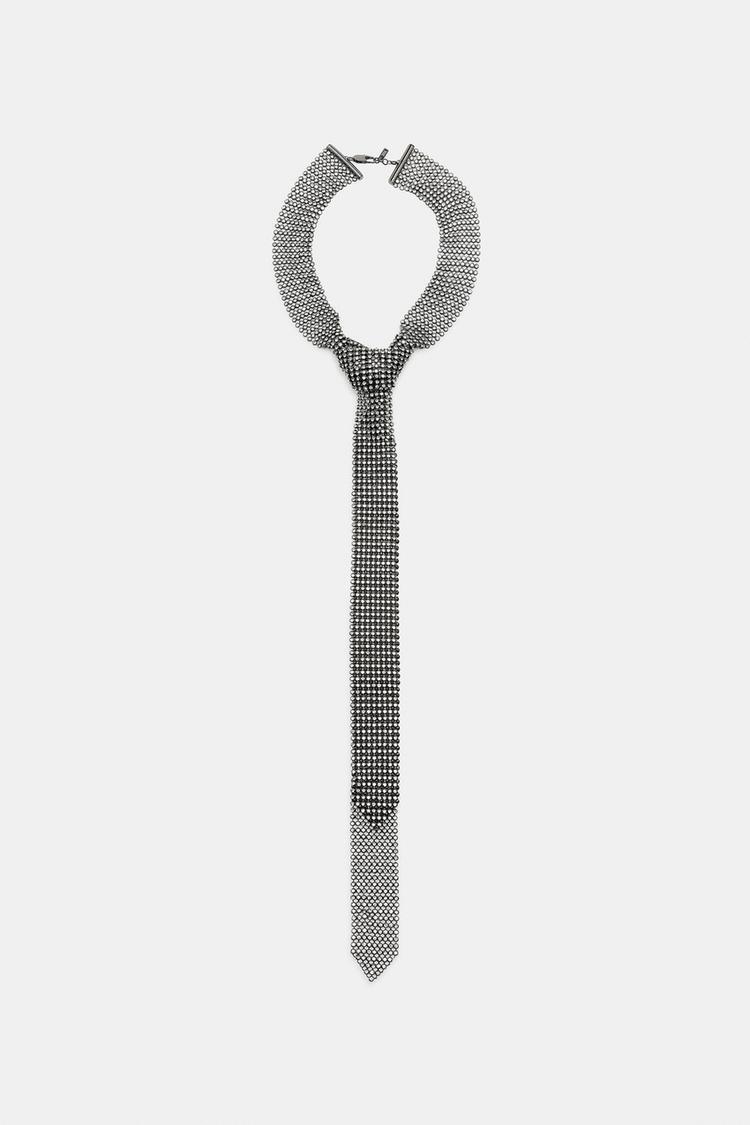 ZARA МЕТАЛЛИЧЕСКОЕ ОЖЕРЕЛЬЕ-ГАЛСТУК СО СТРАЗАМИ, АНТРАЦИТОВО-СЕРЫЙ