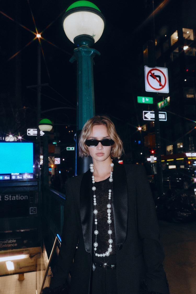 ZARA МЕТАЛЛИЧЕСКОЕ ОЖЕРЕЛЬЕ-ШНУРОК С ЖЕМЧУГОМ, ОТТЕНКИ СЕРОГО