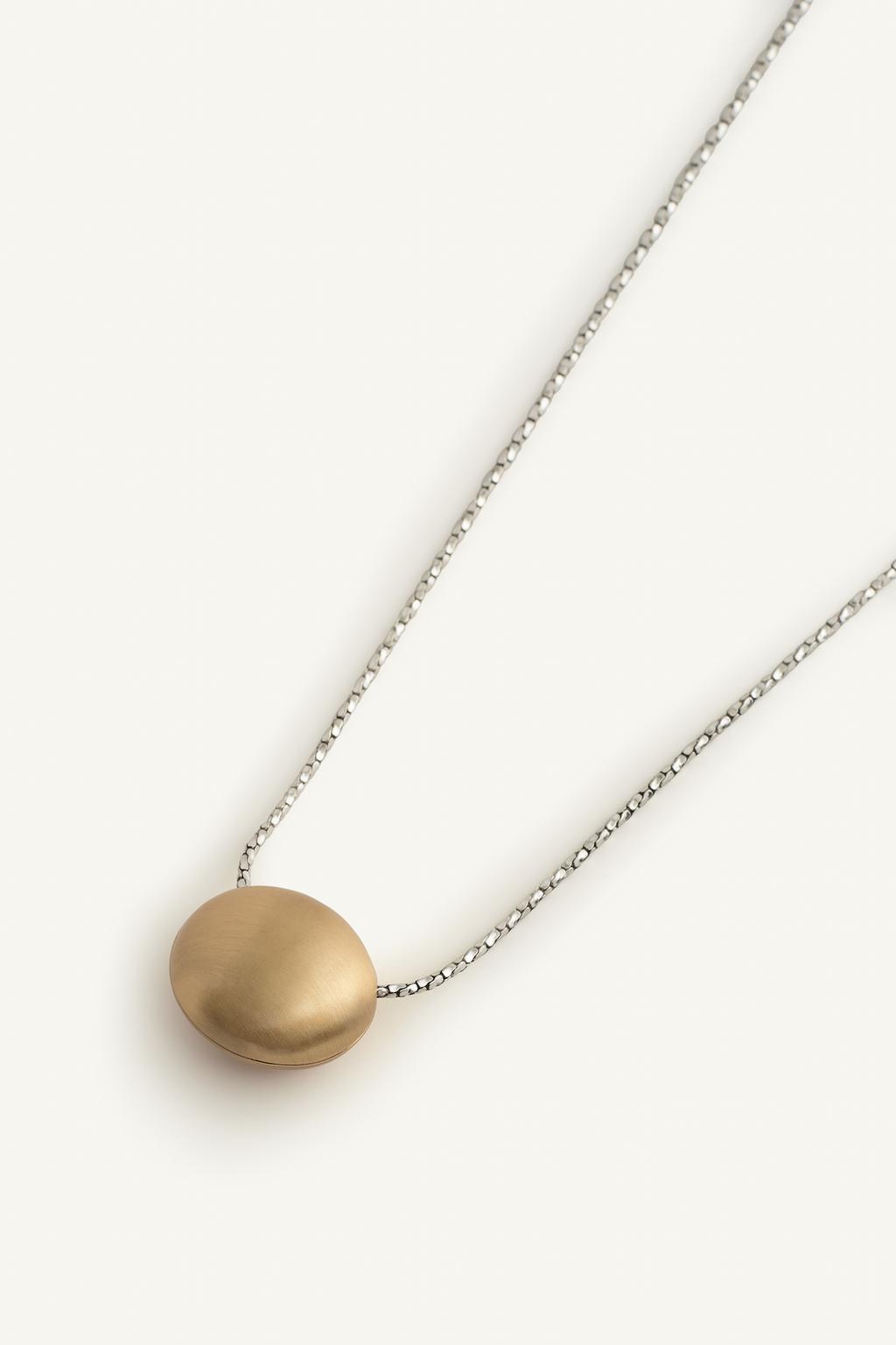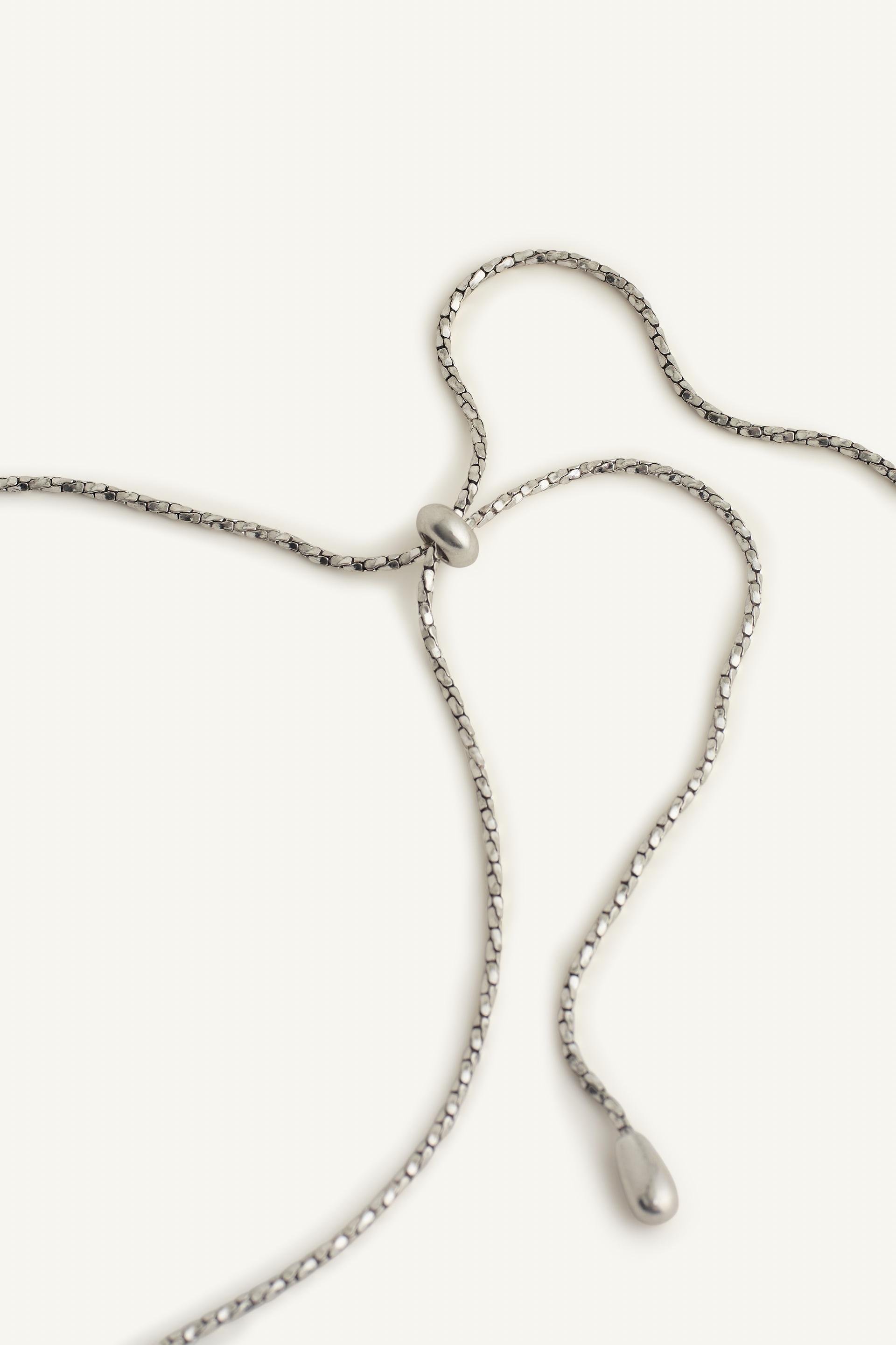 Металлическое ожерелье с длинной цепочкой. С контрастным наконечником овальной формы. С регулируемой застёжкой.