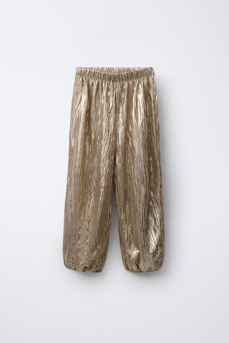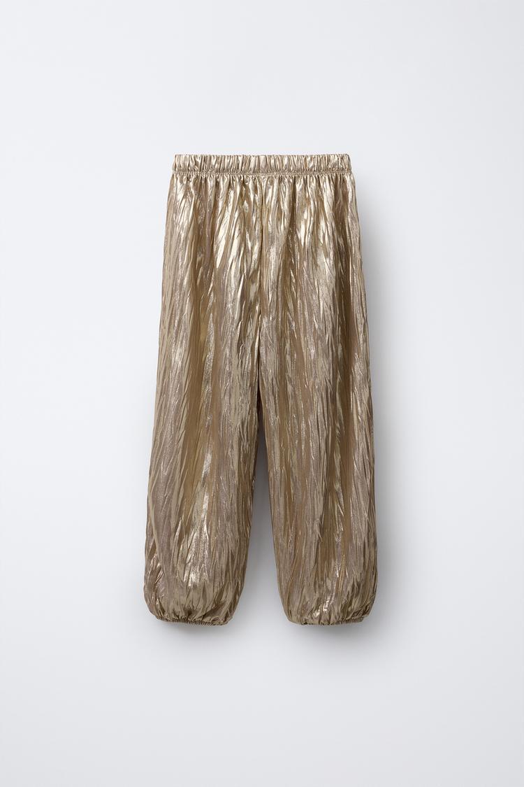 ZARA МЕТАЛЛИЗИРОВАННЫЕ БРЮКИ, ЭКРЮ