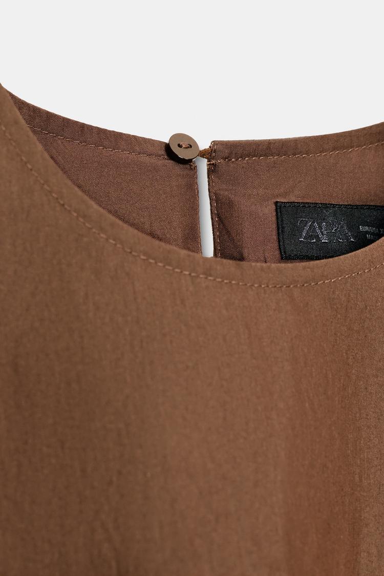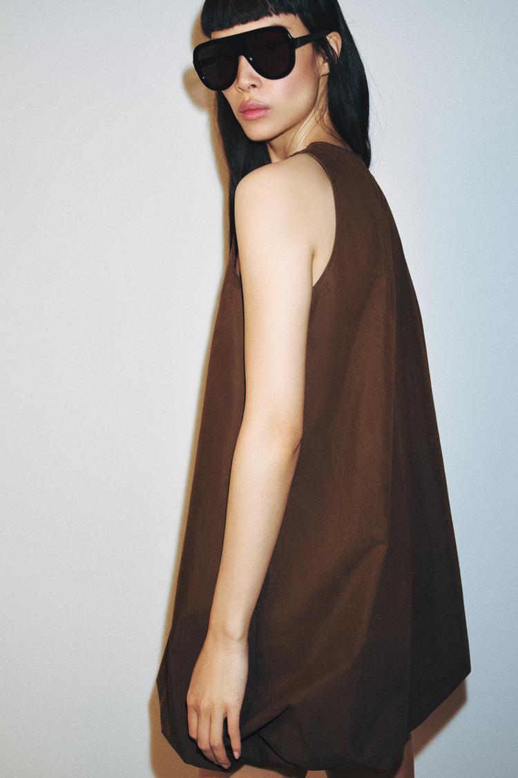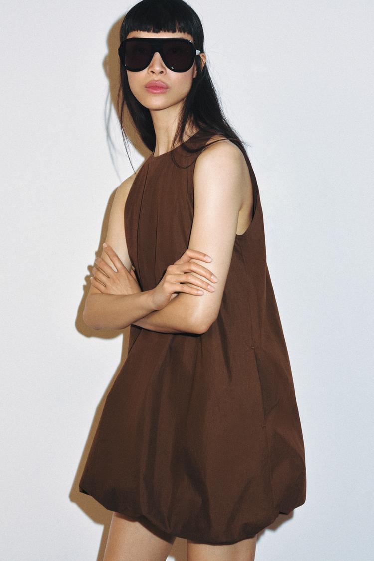 ZARA МИНИ-ПЛАТЬЕ БАЛЛОН, КОРИЧНЕВЫЙ
