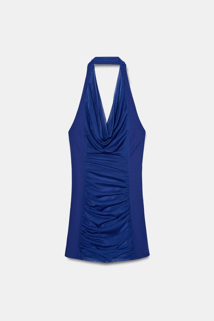 ZARA МИНИ-ПЛАТЬЕ ИЗ ПОЛУПРОЗРАЧНОЙ ТКАНИ С ГОРЛОВИНОЙ ХАЛТЕР, ЧЕРНИЛЬНО-СИНИЙ