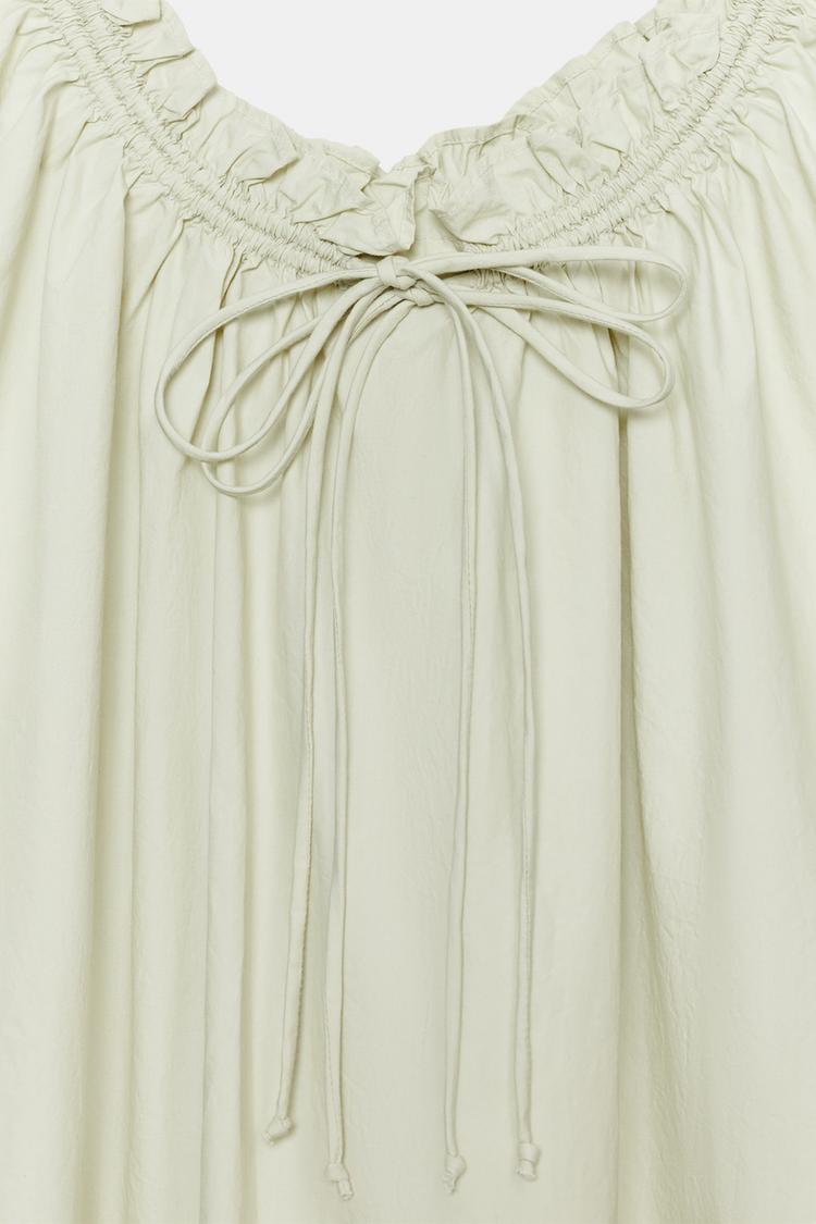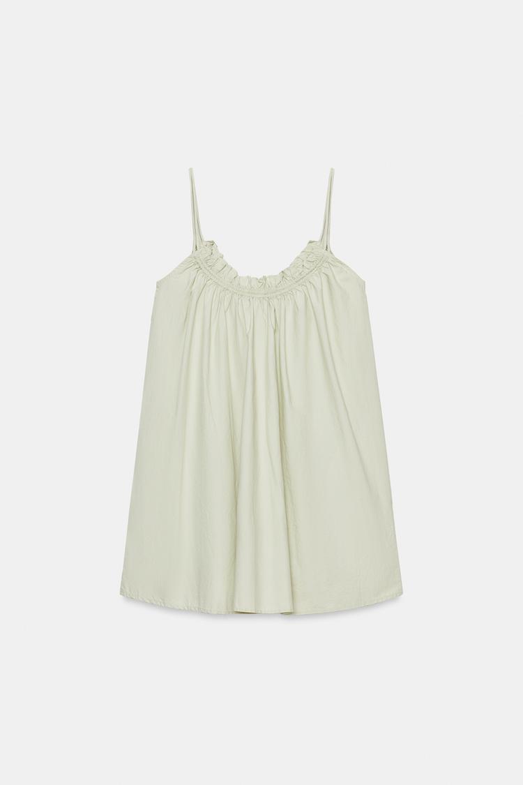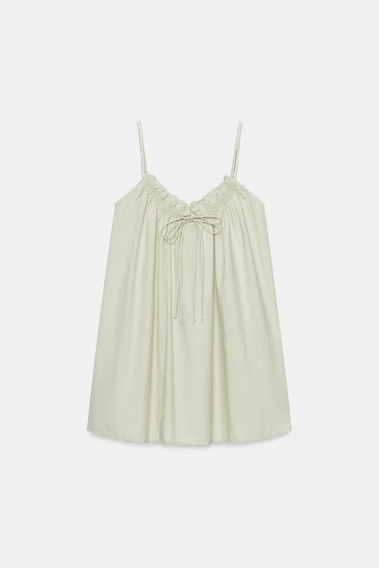 ZARA МИНИ-ПЛАТЬЕ ИЗ ПОПЛИНА НА БРЕТЕЛЯХ, СВЕТЛО-ЗЕЛЕНЫЙ