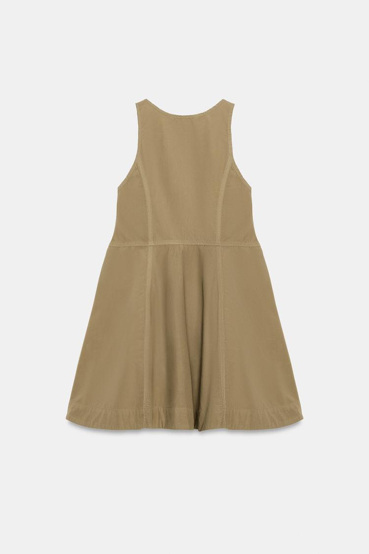 ZARA МИНИ-ПЛАТЬЕ ИЗ ВЫСТИРАННОГО ПОПЛИНА, ТЕМНЫЙ ХАКИ