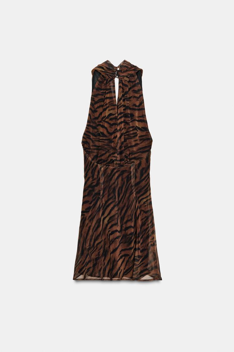 ZARA МИНИ-ПЛАТЬЕ С АНИМАЛИСТИЧЕСКИМ ПРИНТОМ НА ЗАПАХ, ЧЕРНЫЙ/КОРИЧНЕВЫЙ