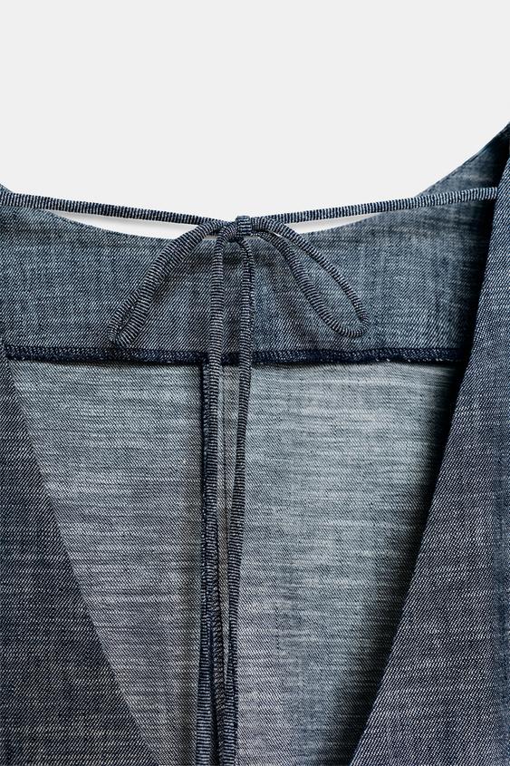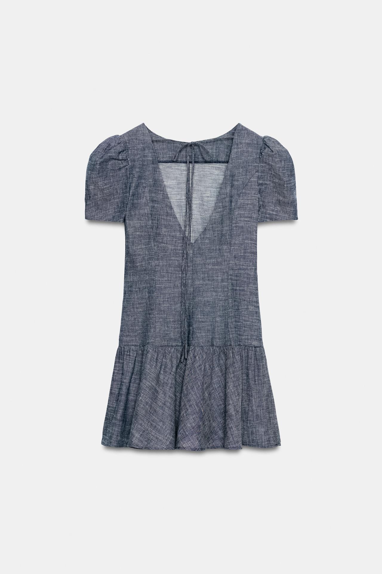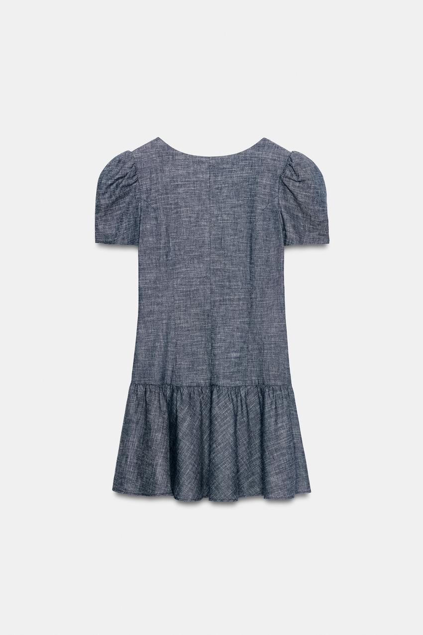 ZARA МИНИ-ПЛАТЬЕ С ОБЪЕМНЫМИ РУКАВАМИ, СИНИЙ