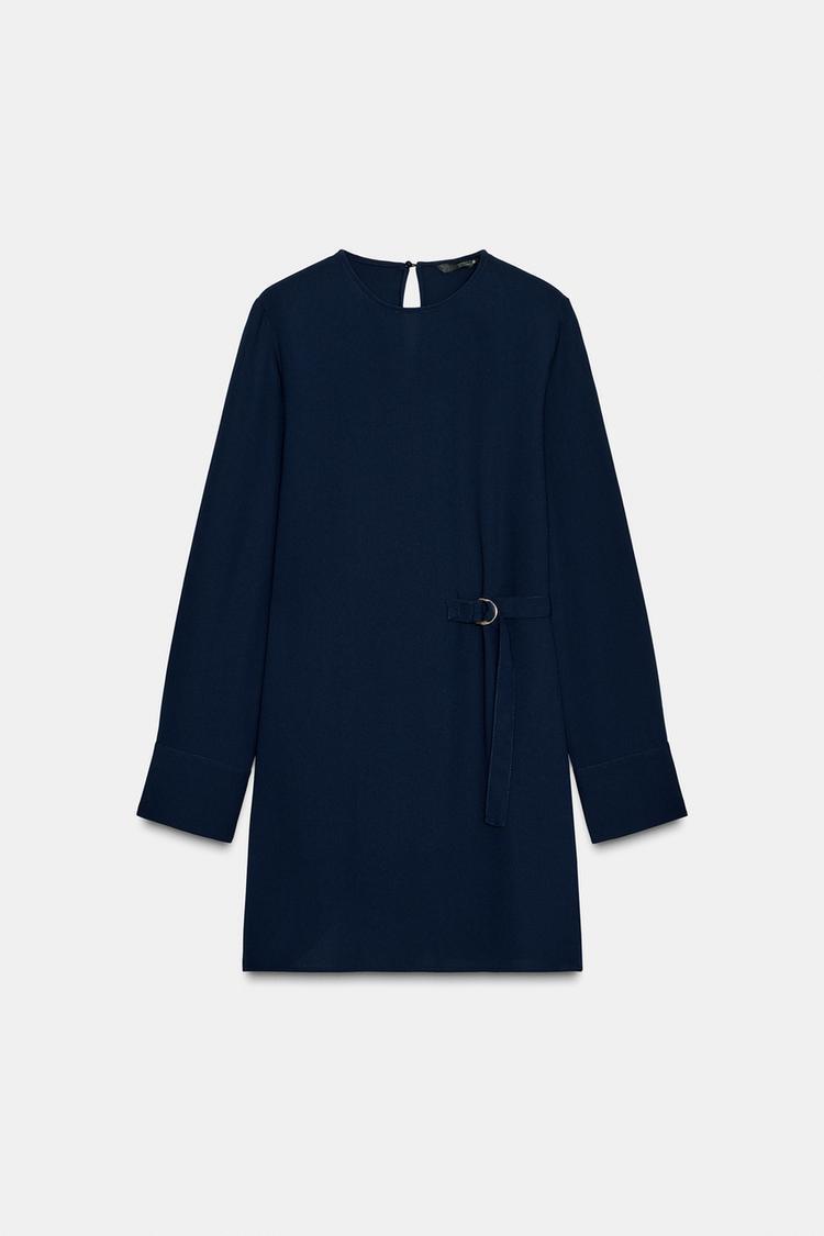 ZARA МИНИ-ПЛАТЬЕ С ПРЯЖКОЙ, МОРСКОЙ СИНИЙ