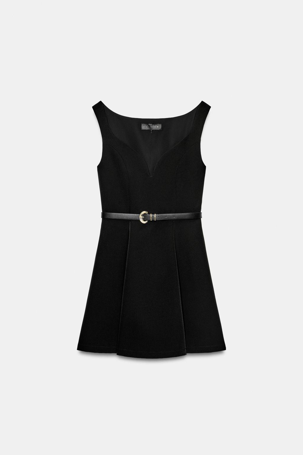 ZARA МИНИ-ПЛАТЬЕ С РЕМНЕМ, ЧЕРНЫЙ
