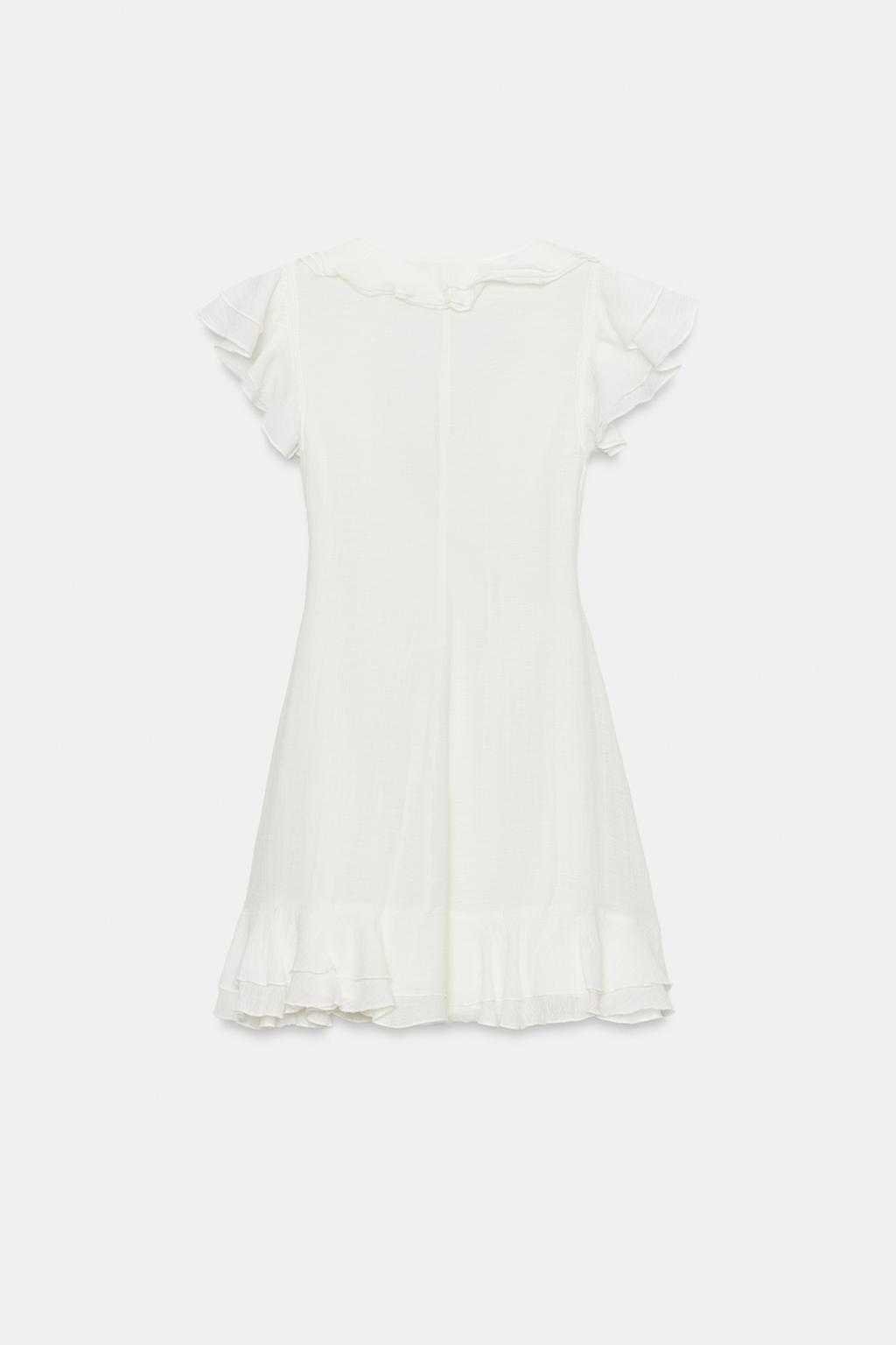 ZARA МИНИ-ПЛАТЬЕ С ВОЛАНАМИ, БЕЛЫЙ