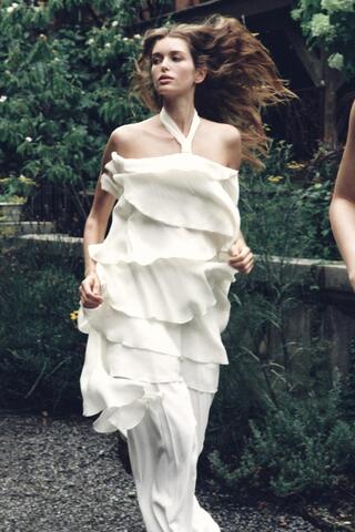ZARA МИНИ-ПЛАТЬЕ С ВОЛАНАМИ, ЭКРЮ