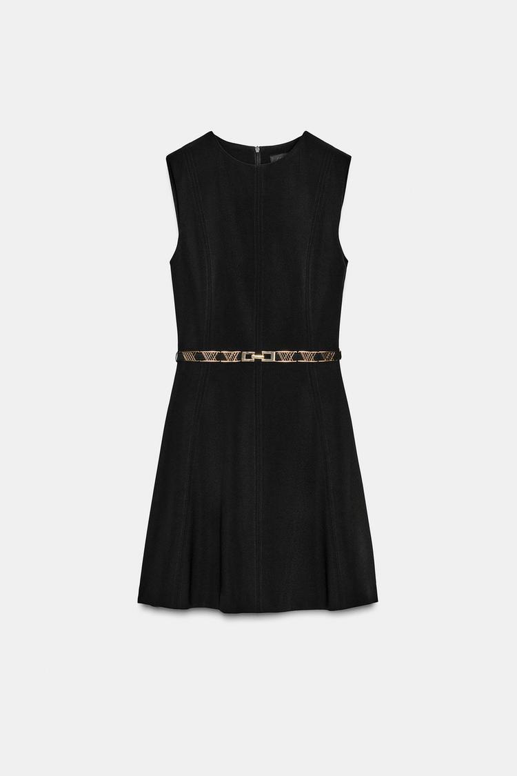 ZARA МИНИ-ПЛАТЬЕ С ЗОЛОТЫМ РЕМНЕМ, ЧЕРНЫЙ