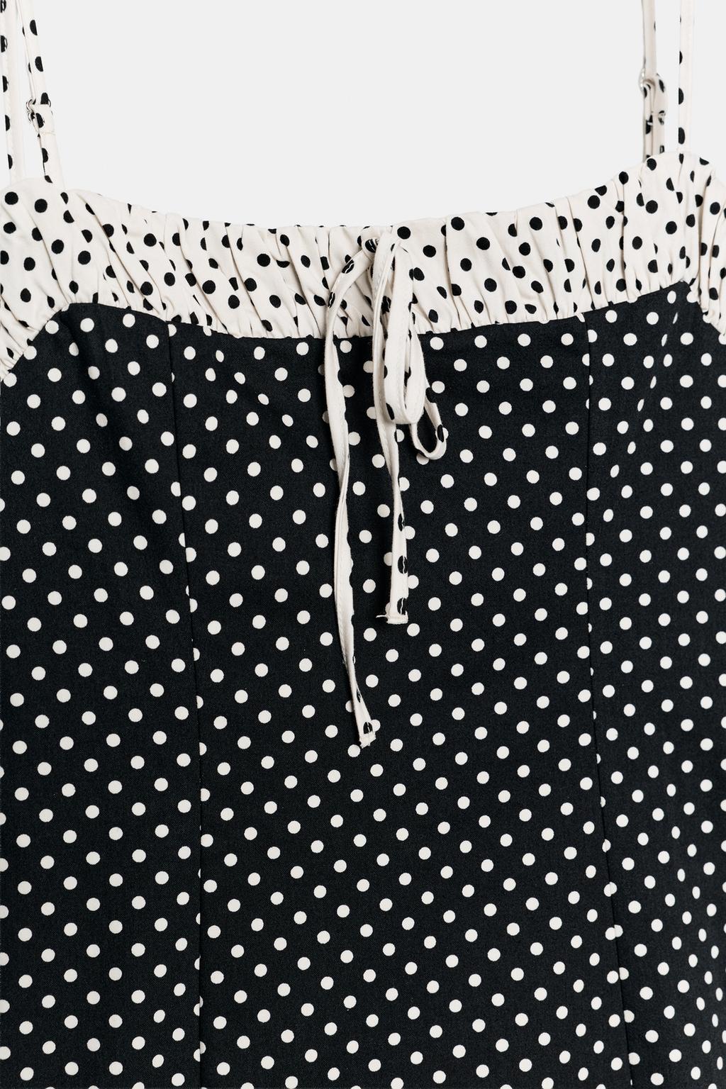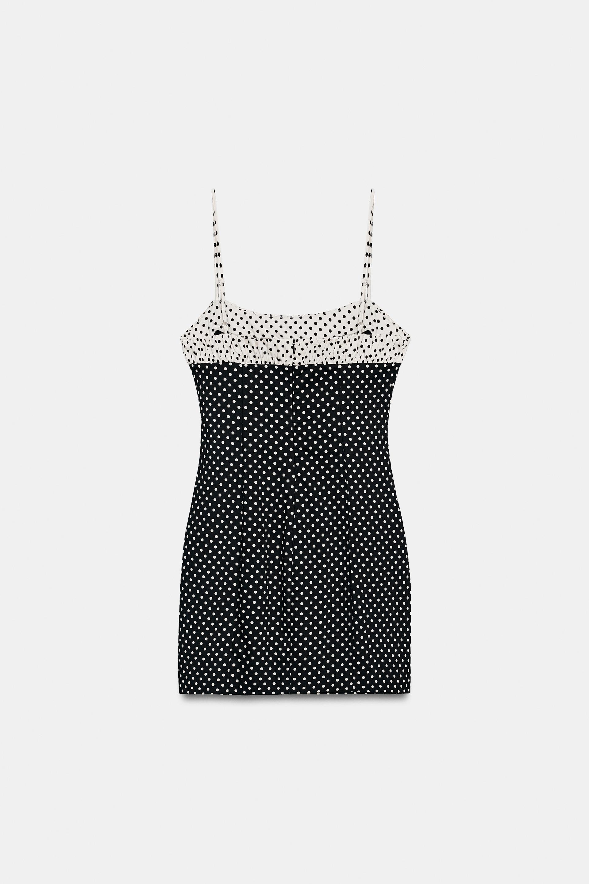 ZARA МИНИ-ПЛАТЬЕ В ГОРОШЕК, ЧЕРНЫЙ/БЕЛЫЙ