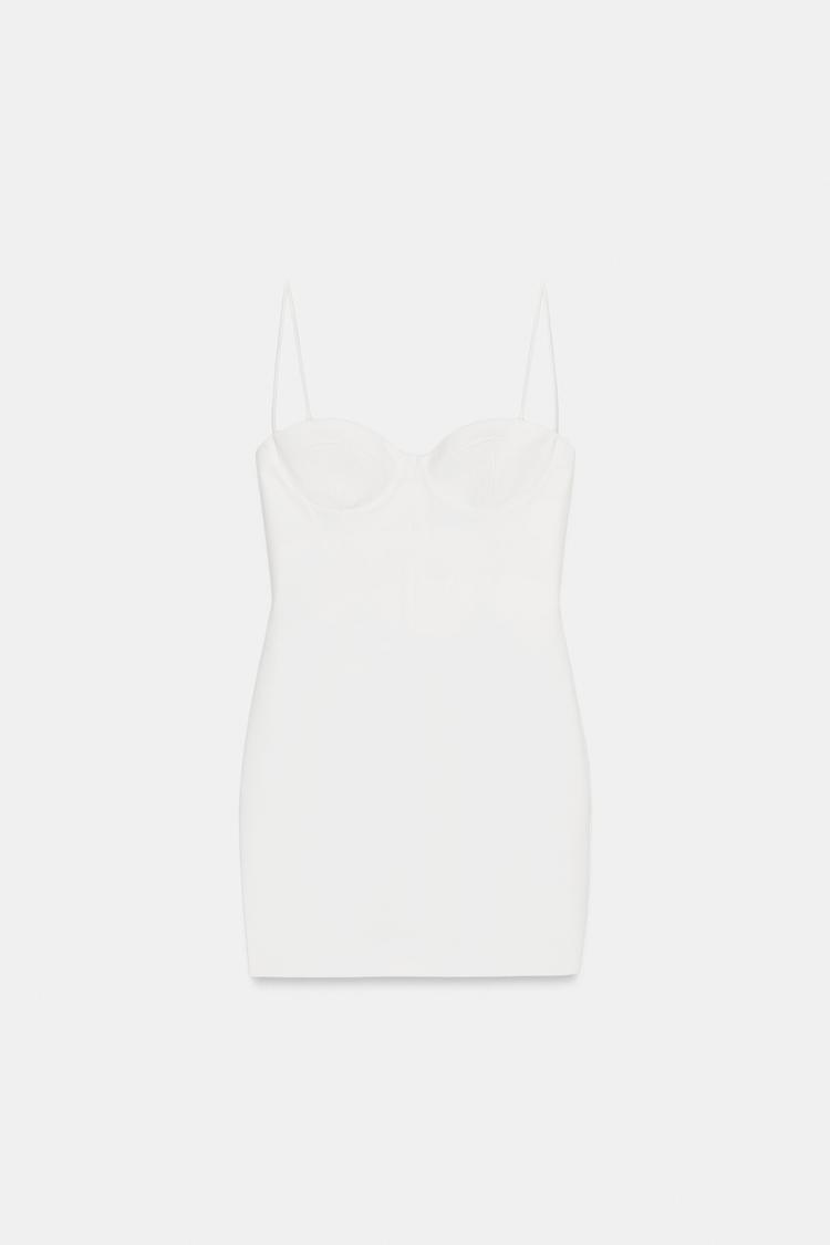 ZARA МИНИ-ПЛАТЬЕ НА БРЕТЕЛЯХ, БЕЛЫЙ