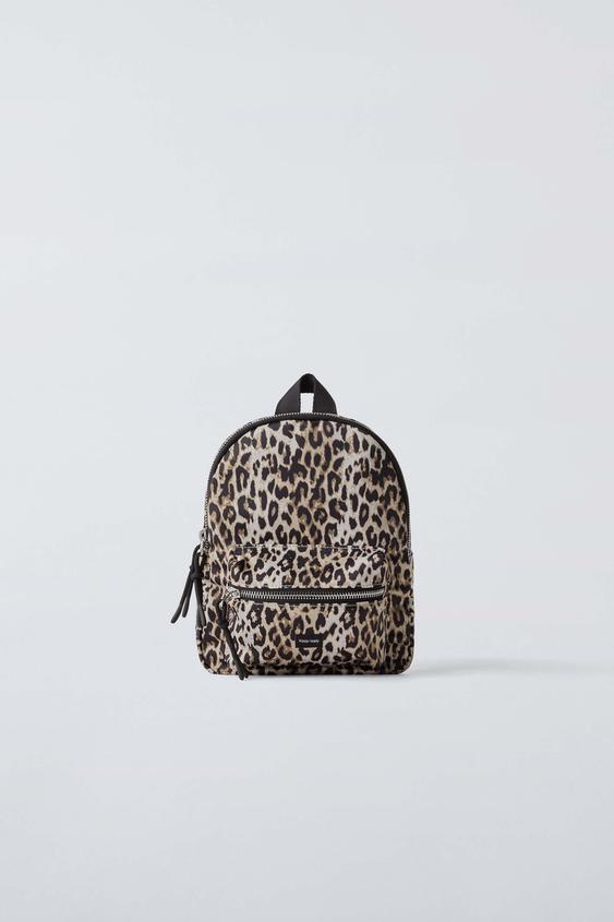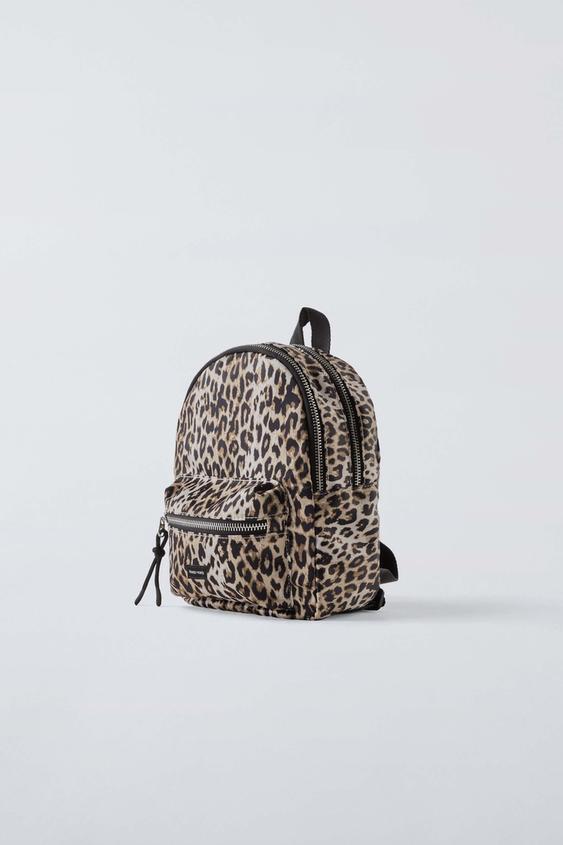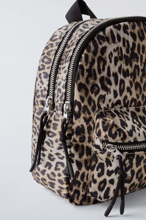 ZARA МИНИ-РЮКЗАК ИЗ НЕЙЛОНА С АНИМАЛИСТИЧЕСКИМ ПРИНТОМ, ЭКРЮ