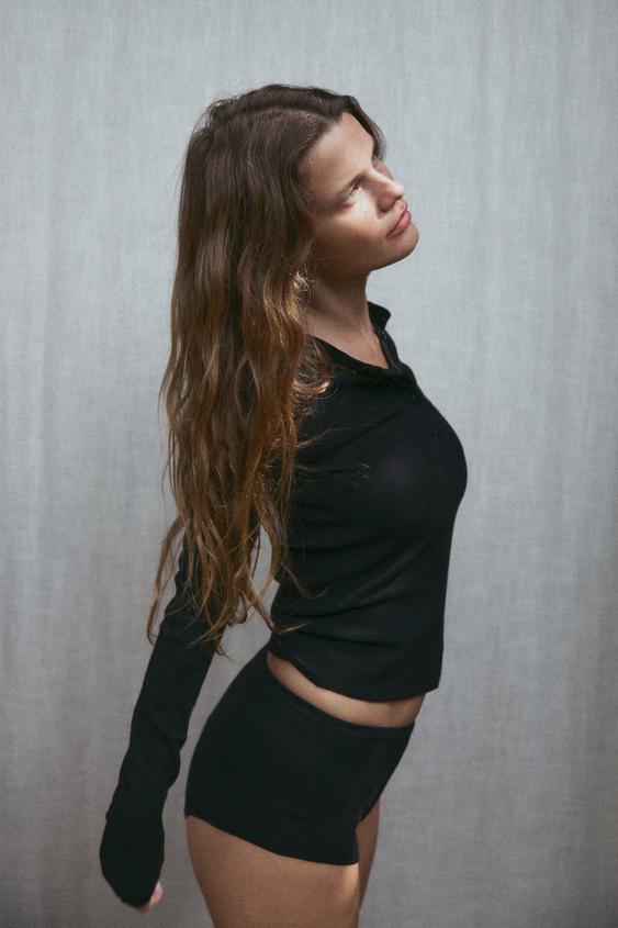 ZARА МИНИ-ШОРТЫ ИЗ ХЛОПКА С ПУГОВИЦАМИ, ЧЕРНЫЙ