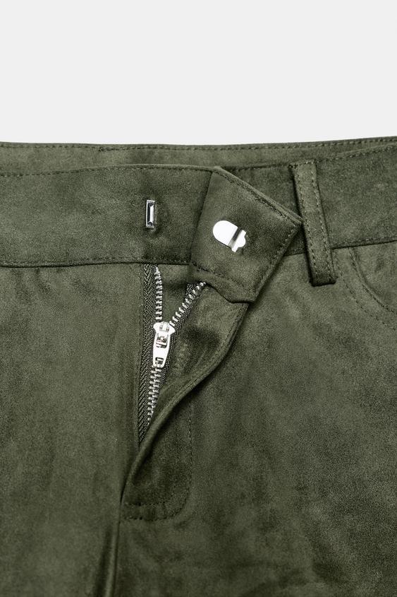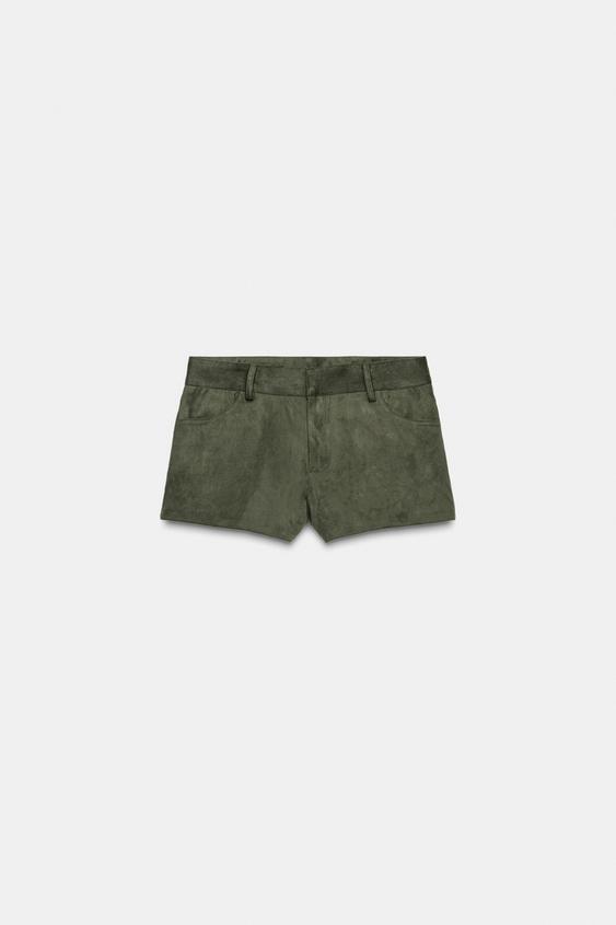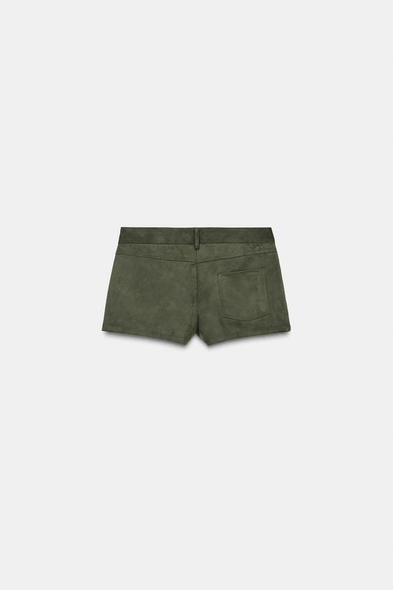 ZARА МИНИ-ШОРТЫ ИЗ ИСКУССТВЕННОЙ ЗАМШИ, БОЛОТНО-ЗЕЛЕНЫЙ