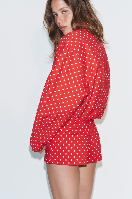 ZARA МИНИ-ШОРТЫ С КАРМАНАМИ, КРАСНЫЙ/БЕЛЫЙ