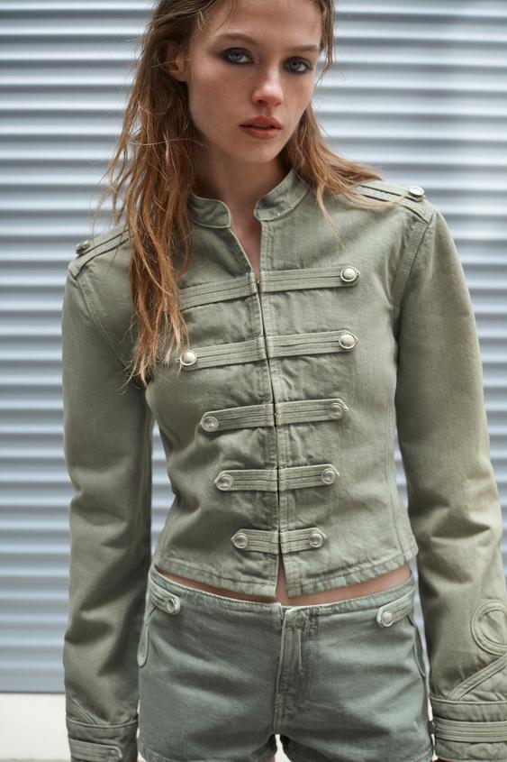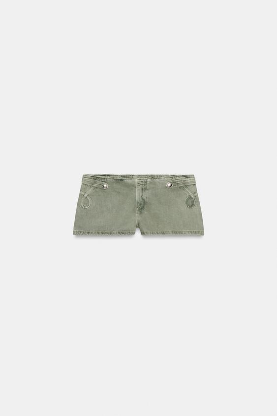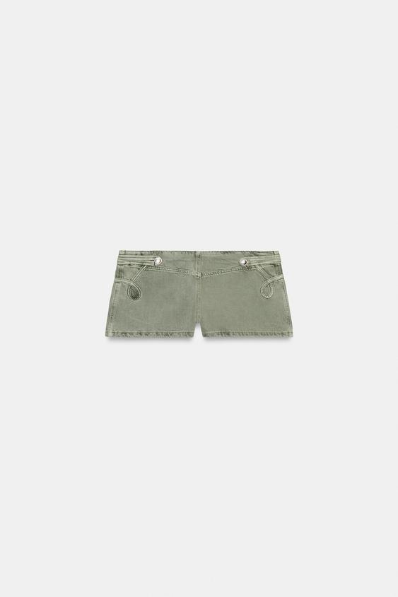 ZARA МИНИ-ШОРТЫ С ПУГОВИЦАМИ, ЗЕЛЕНЫЙ