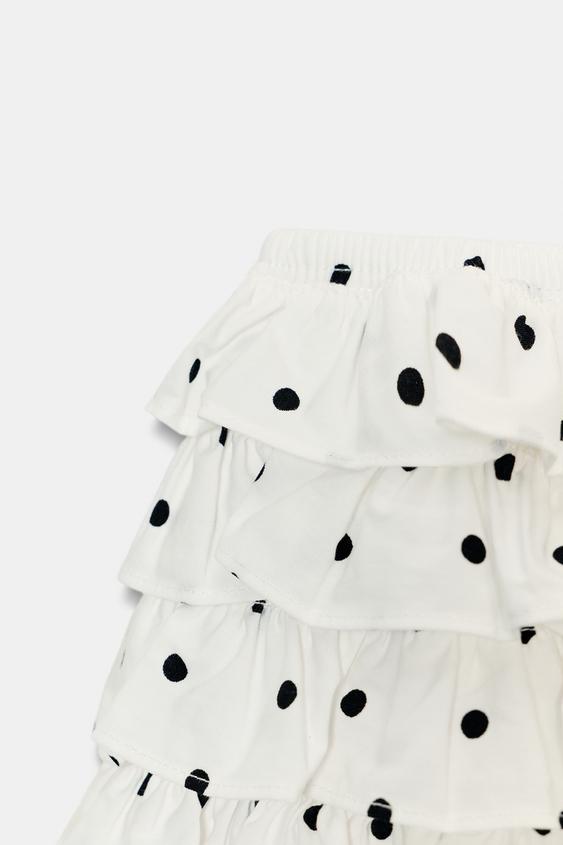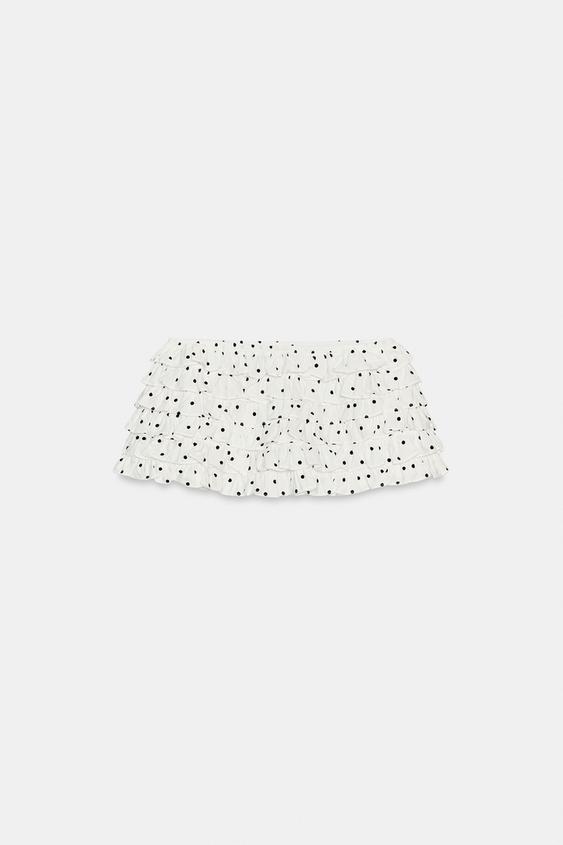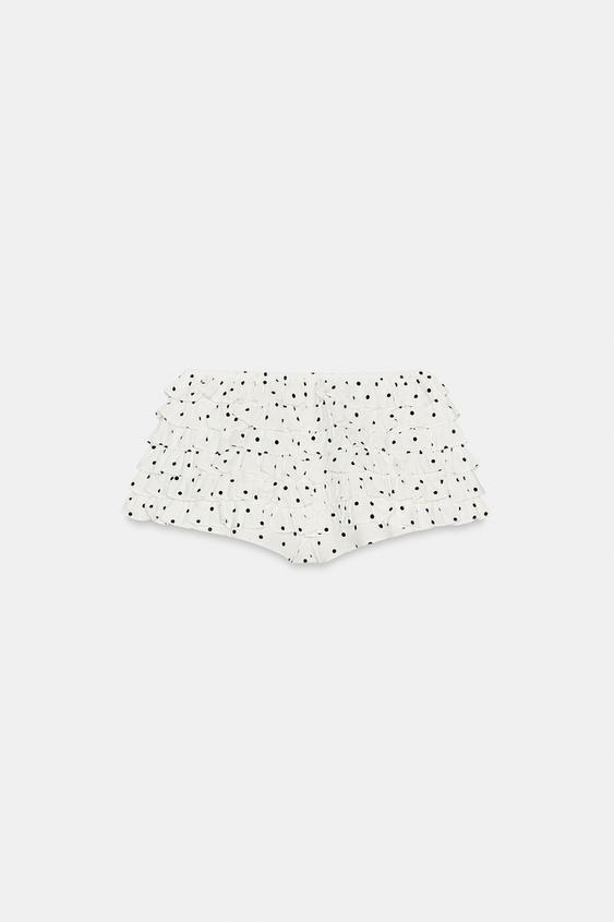 ZARA МИНИ-ШОРТЫ В ГОРОШЕК С ВОЛАНАМИ, ЭКРЮ/ЧЕРНЫЙ