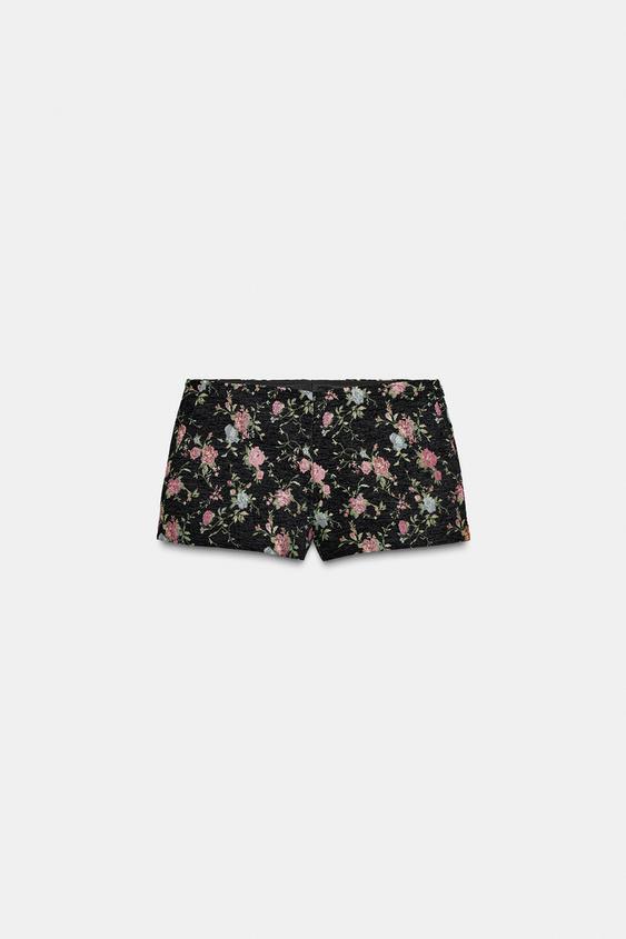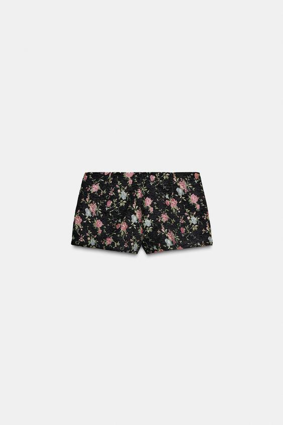 ZARА МИНИ-ШОРТЫ ЖАККАРД С ЦВЕТАМИ, ЧЕРНЫЙ