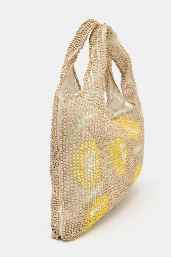 ZARA МИНИ-СУМКА ИЗ БИСЕРА, ЖЕЛТЫЙ