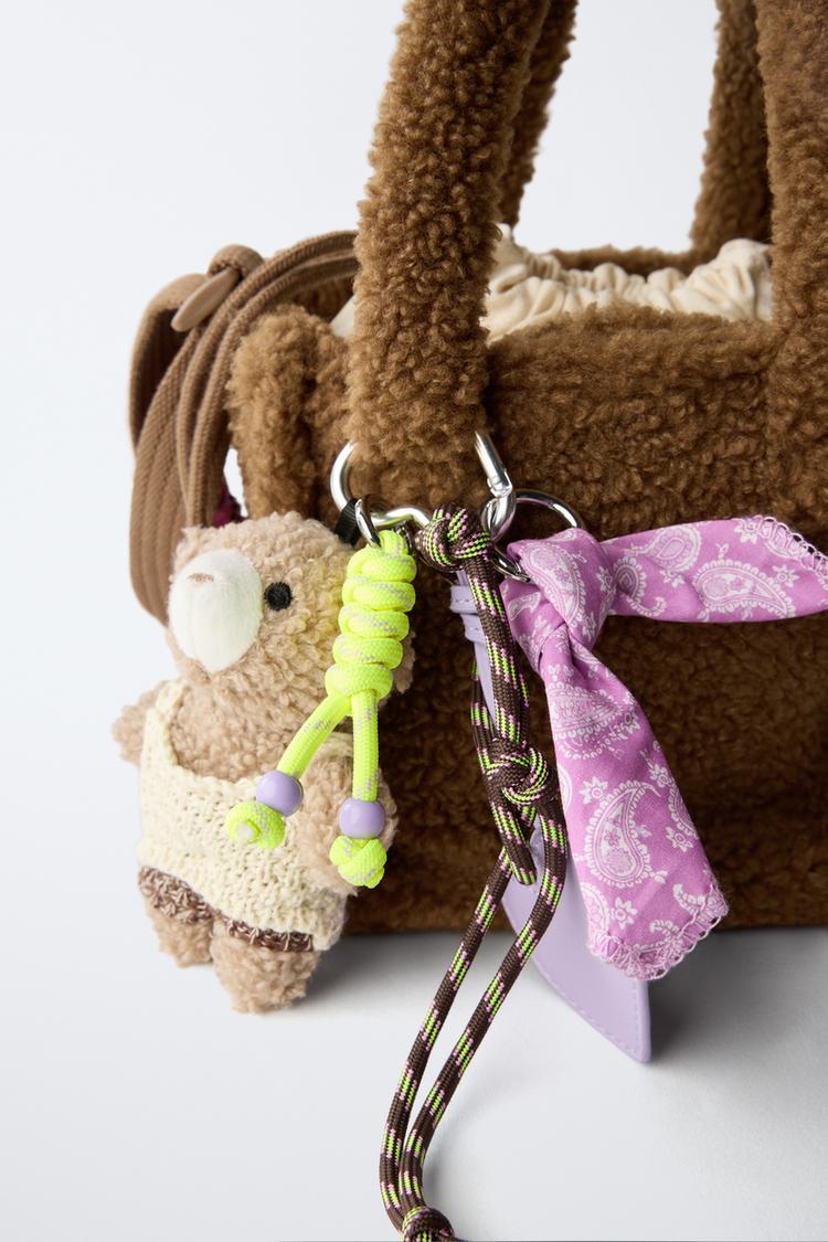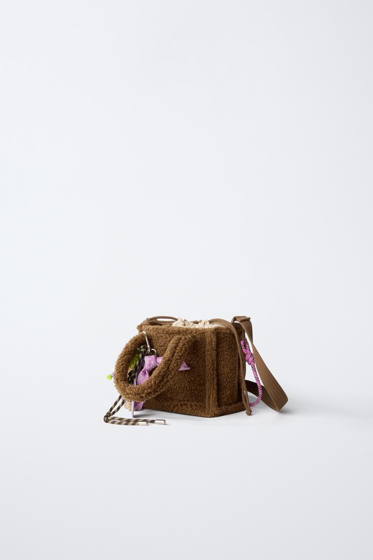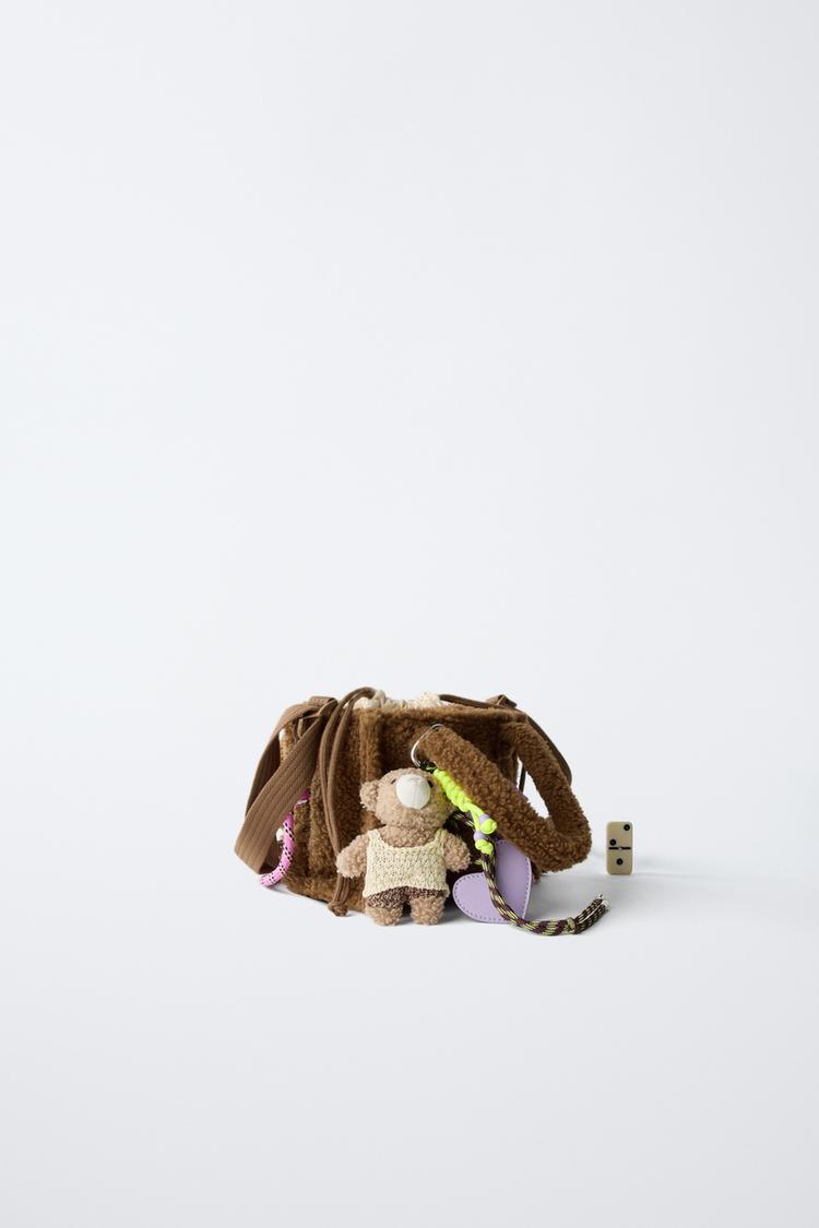 ZARA МИНИ-СУМКА ИЗ ИСКУССТВЕННОЙ ОВЧИНЫ С ПОДВЕСКАМИ, КОРИЧНЕВЫЙ