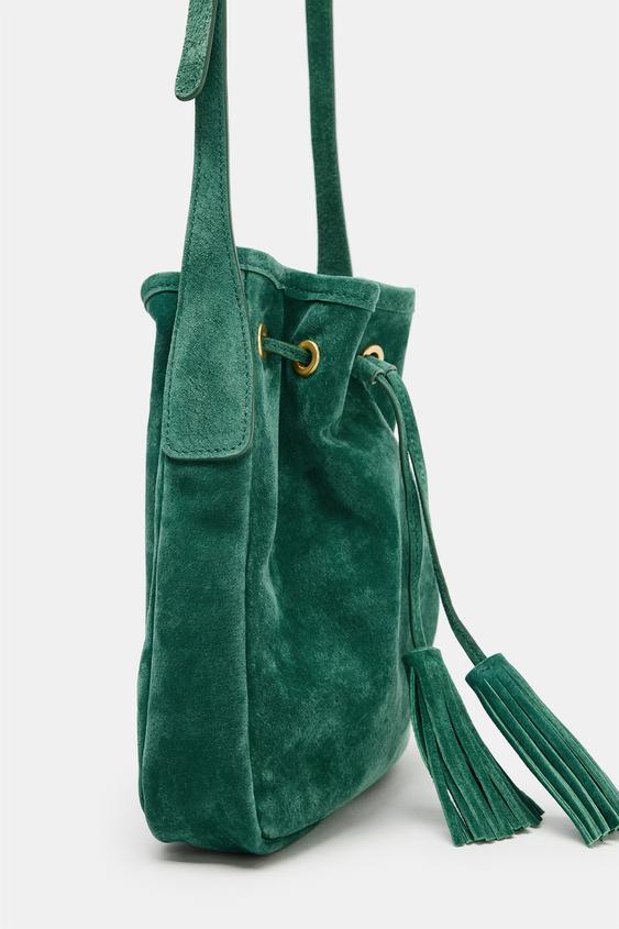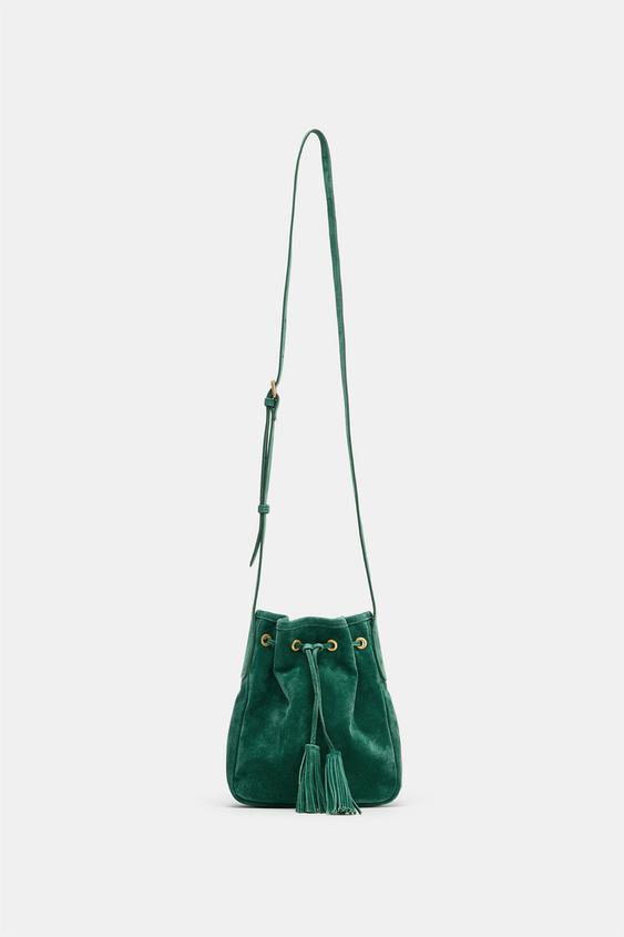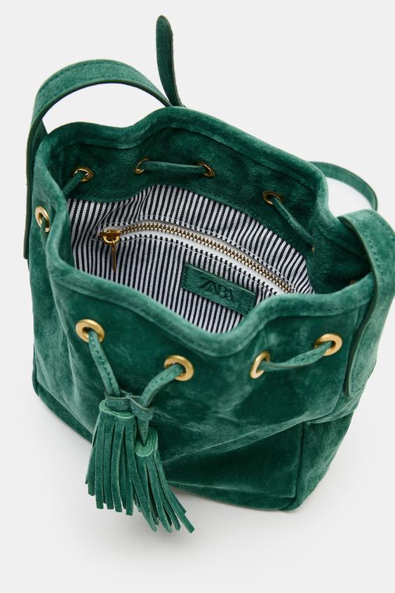 ZARA МИНИ-СУМКА ИЗ СЖАТОЙ КОЖИ, ЗЕЛЕНЫЙ