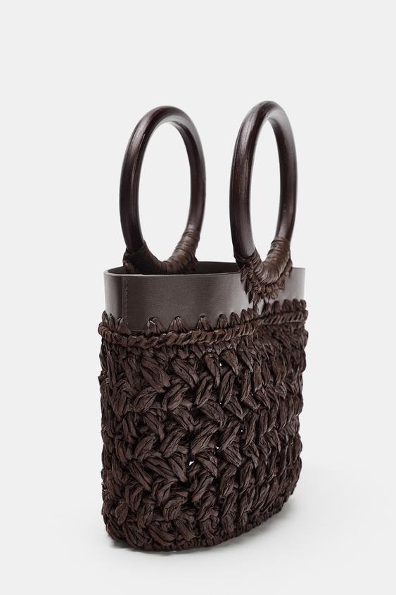 ZARA МИНИ-СУМКА-КОРЗИНА ИЗ РАФИИ, КОРИЧНЕВЫЙ