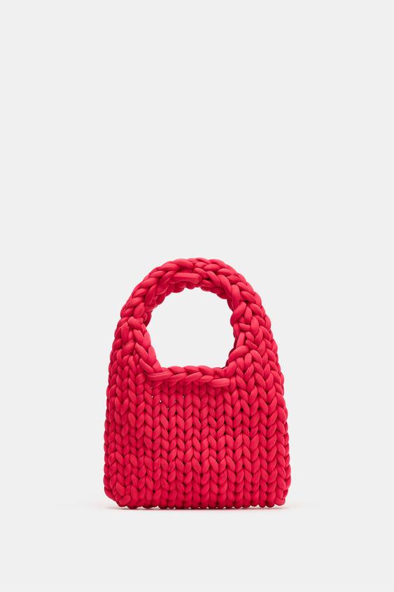 ZARA МИНИ-СУМКА ПЛЕТЕНАЯ, КРАСНЫЙ