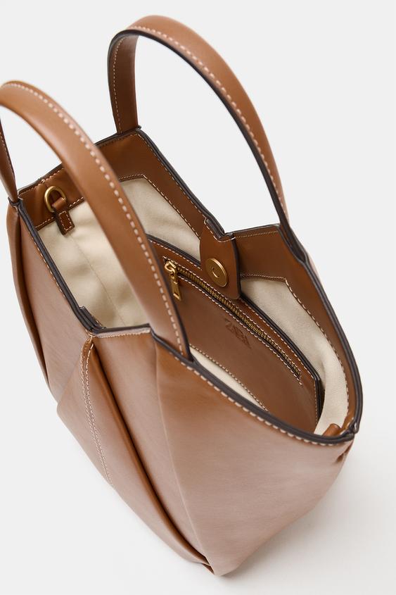 ZARA МИНИ-СУМКА-ШОПЕР, КОРИЧНЕВЫЙ
