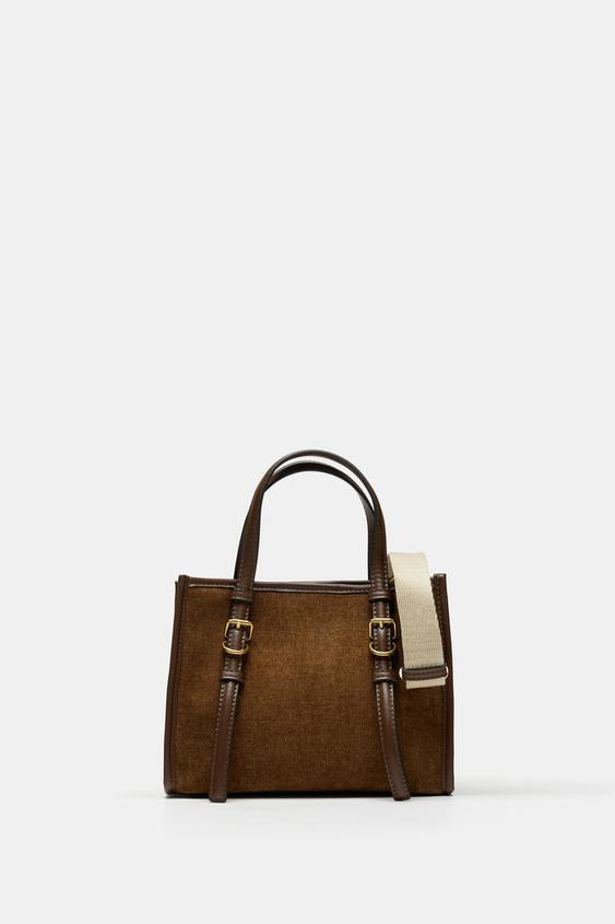 ZARA МИНИ-СУМКА ТОУТ ИЗ ВЕЛЬВЕТА, КОРИЧНЕВЫЙ