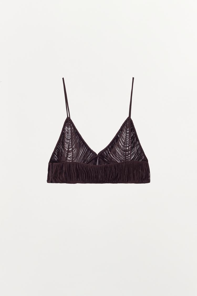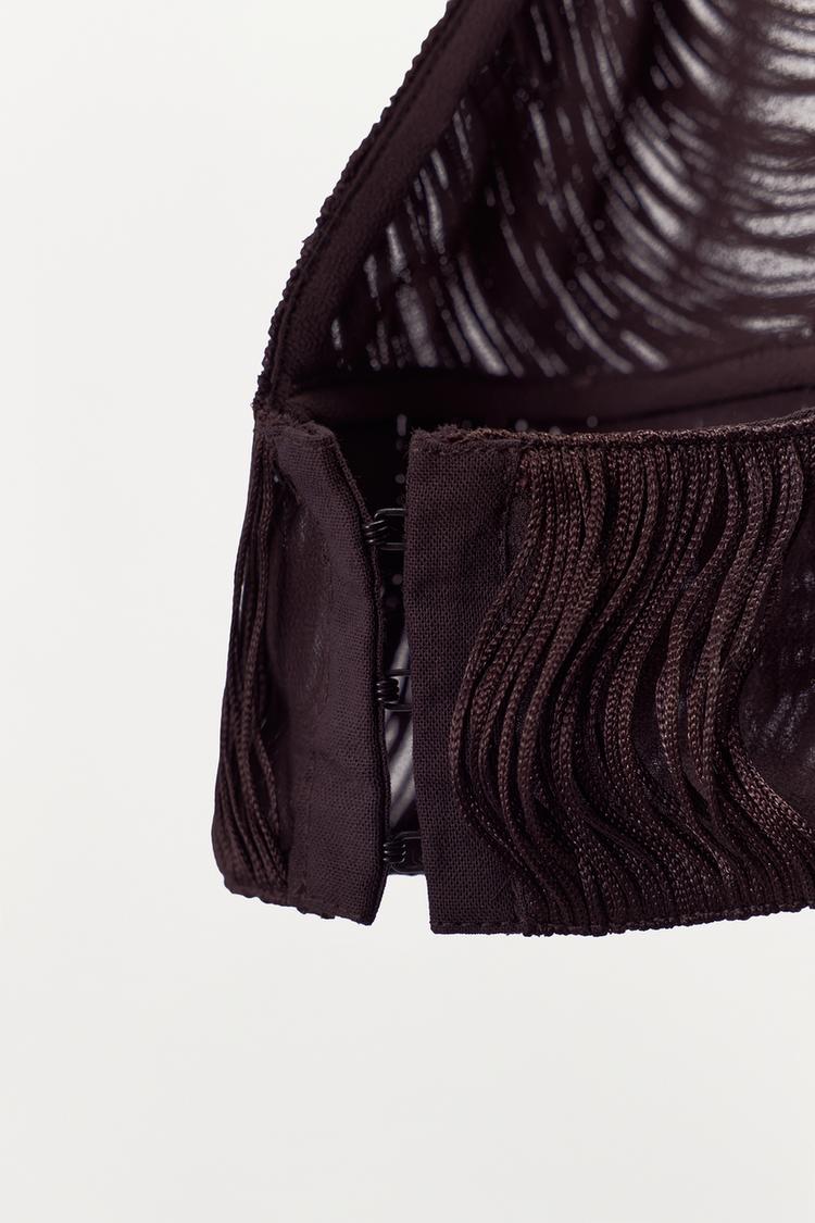 ZARA МИНИ-ТОП С БАХРОМОЙ, КОРИЧНЕВЫЙ