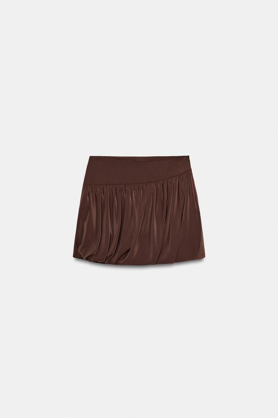 ZARA МИНИ-ЮБКА БАЛЛОН, КОРИЧНЕВЫЙ