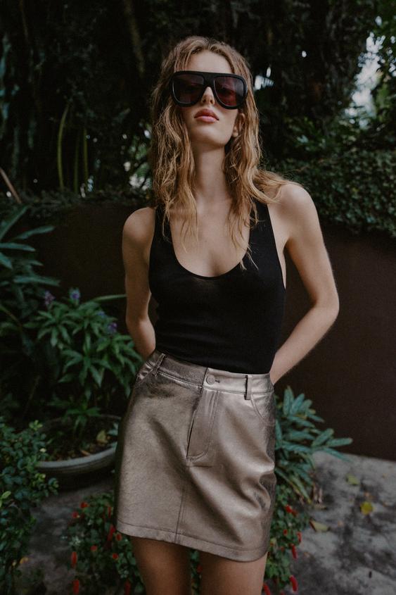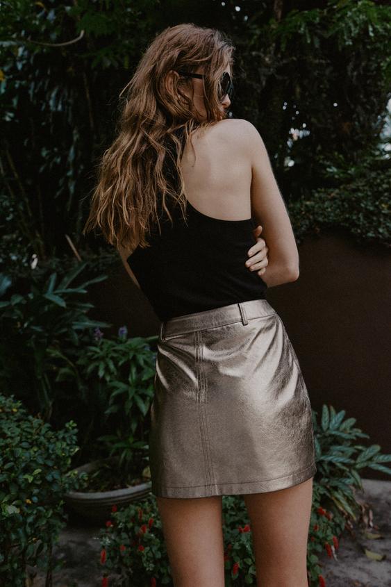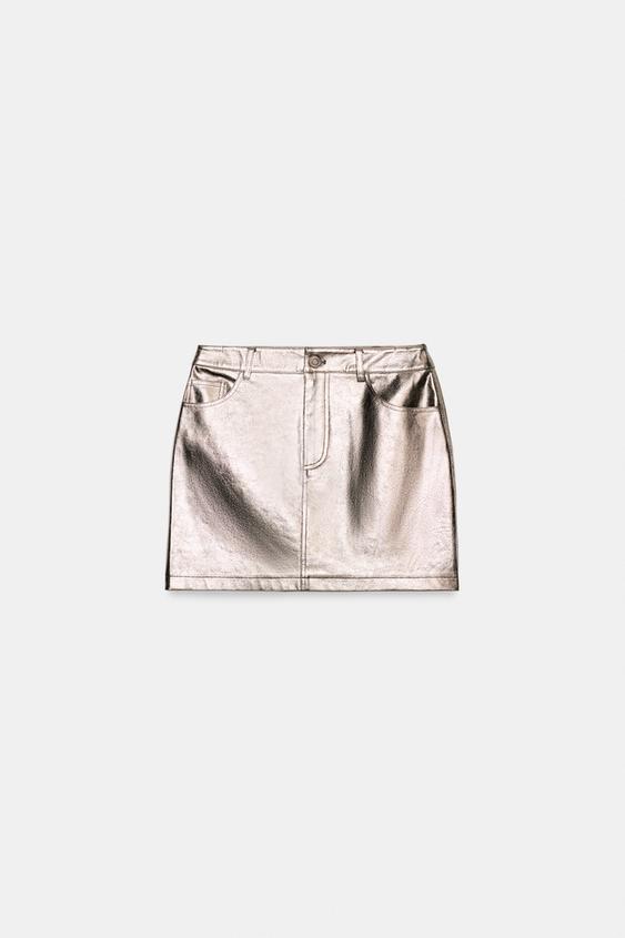 ZARA МИНИ-ЮБКА ИЗ ИСКУССТВЕННОЙ КОЖИ, СЕРЕБРИСТЫЙ