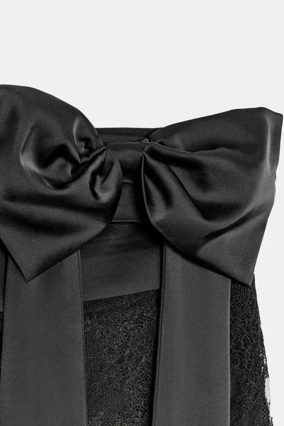 ZARA МИНИ-ЮБКА С КОМБИНИРОВАННЫМ КРУЖЕВОМ И БАНТОМ, ЧЕРНЫЙ