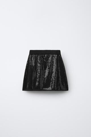 ZARA МИНИ-ЮБКА С ПАЙЕТКАМИ, ЧЕРНЫЙ