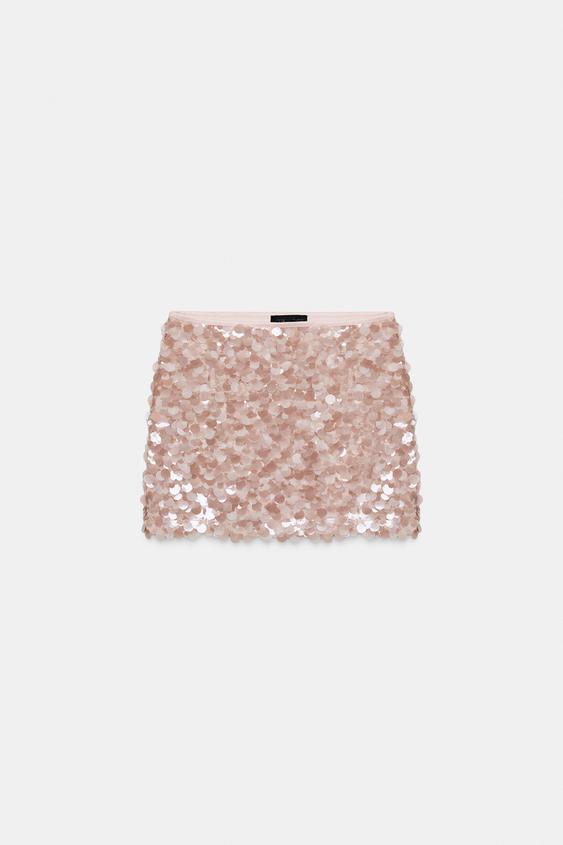 ZARA МИНИ-ЮБКА С ПАЙЕТКАМИ, ПУДРОВО-РОЗОВЫЙ