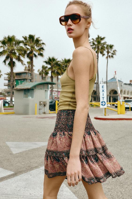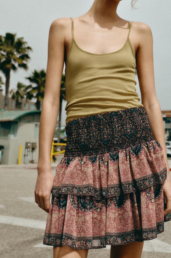 ZARA МИНИ-ЮБКА С ПРИНТОМ «СОТЫ», РАЗНОЦВЕТНЫЙ