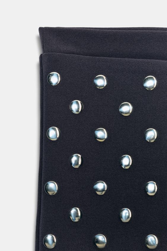ZARA МИНИ-ЮБКА С ЗАКЛЕПКАМИ, СЕРЫЙ