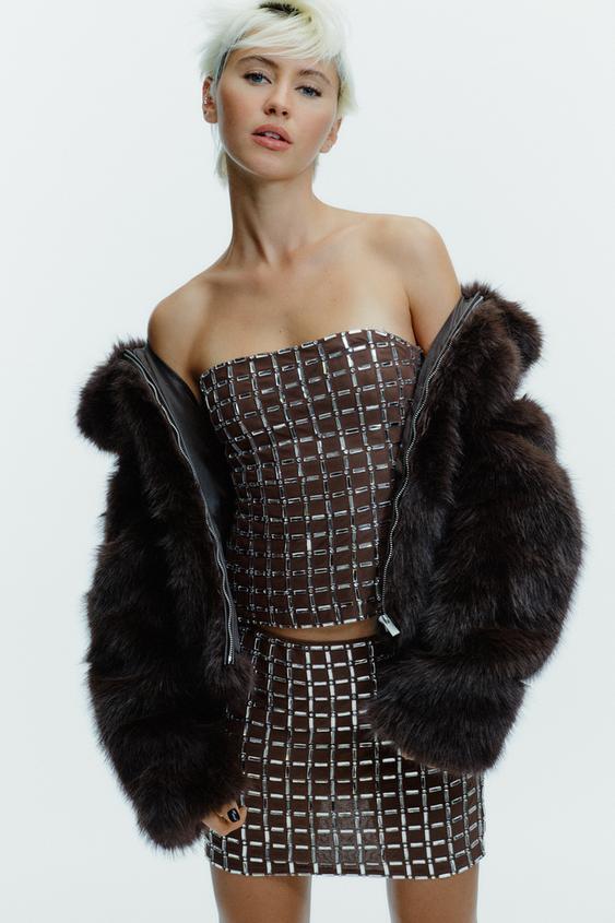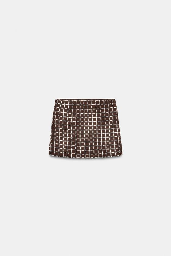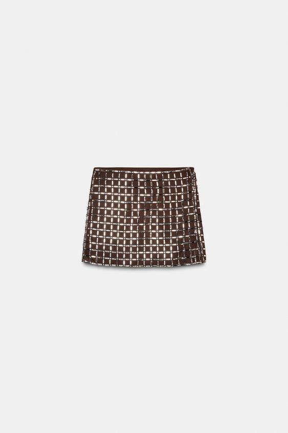 ZARA МИНИ-ЮБКА СО СТРАЗАМИ, КОРИЧНЕВЫЙ