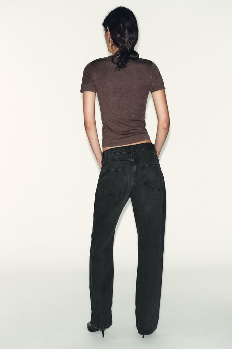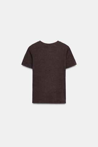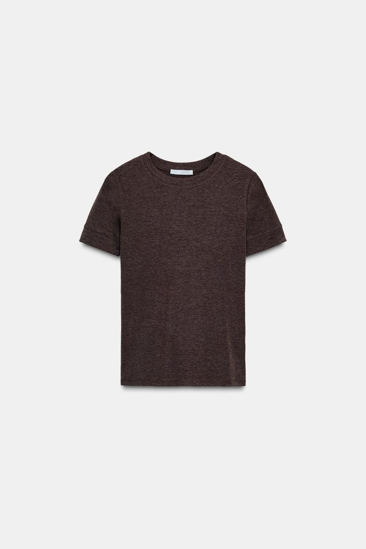 ZARA МИНИМАЛИСТИЧНАЯ ФУТБОЛКА С КОРОТКИМИ РУКАВАМИ, КОРИЧНЕВЫЙ