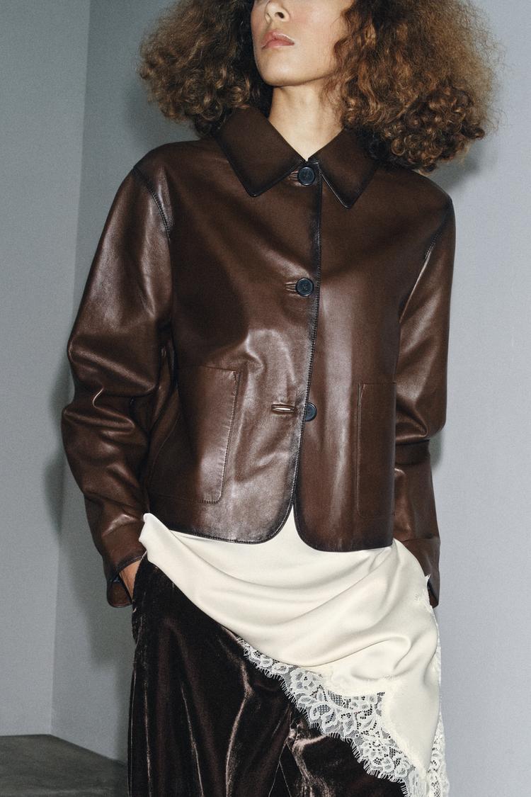 ZARA МИНИМАЛИСТИЧНАЯ КОЖАНАЯ КУРТКА ZW COLLECTION LIMITED EDITION, КОРИЧНЕВЫЙ