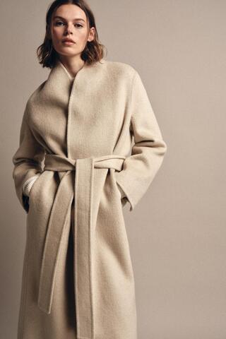 ZARA МИНИМАЛИСТИЧНОЕ ПАЛЬТО ИЗ СМЕСОВОЙ ШЕРСТИ — ZW COLLECTION LIMITED EDITION, БЕЖЕВЫЙ