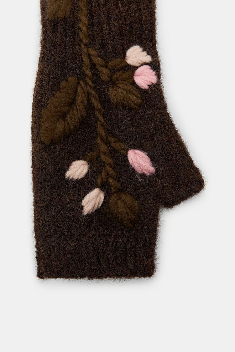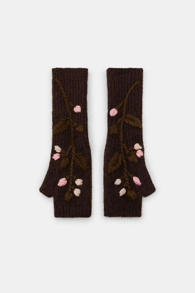 ZARA МИТЕНКИ С ВЫШИВКОЙ В ВИДЕ ЦВЕТОВ, КОРИЧНЕВЫЙ