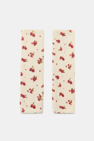 ZARA МИТЕНКИ ТРИКОТАЖНЫЕ С ЦВЕТОЧНЫМ ПРИНТОМ, ЭКРЮ