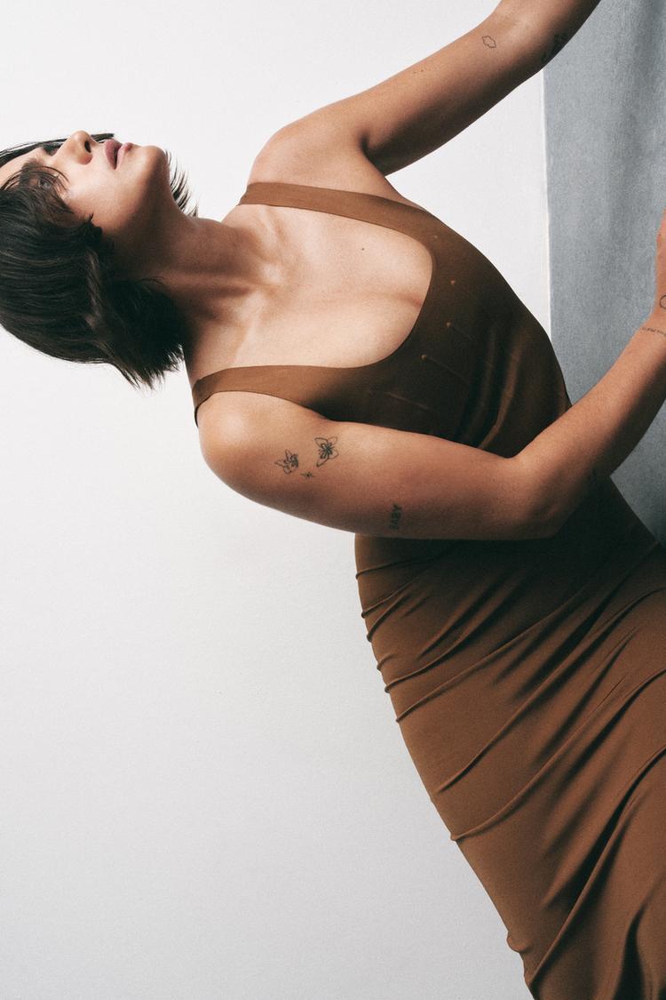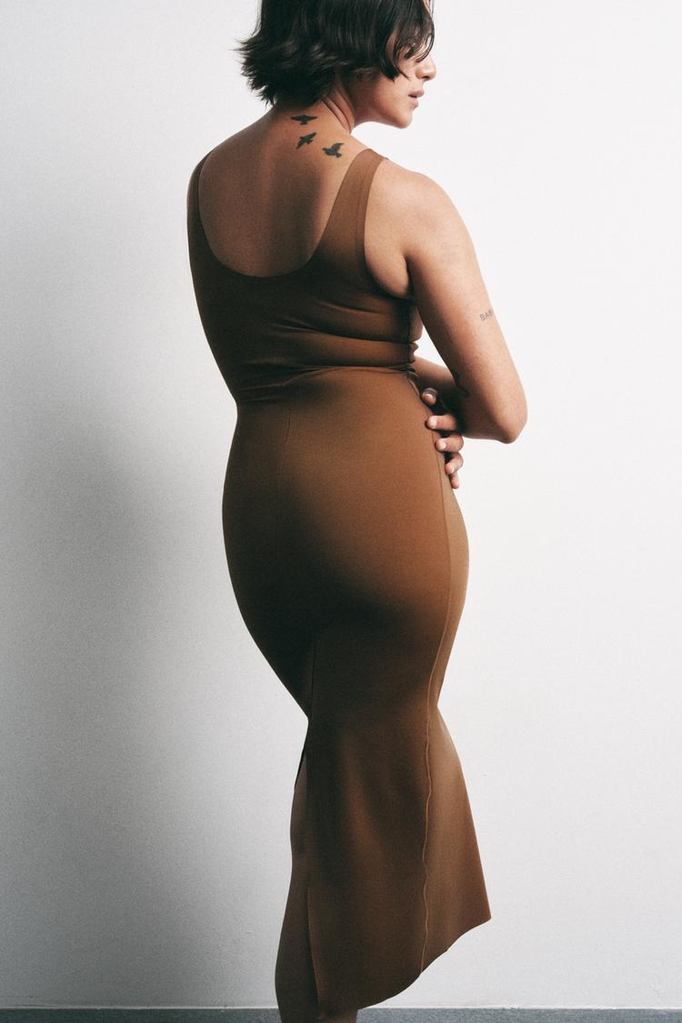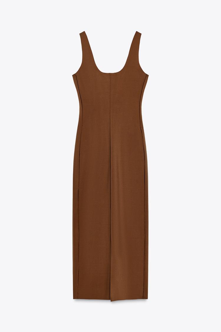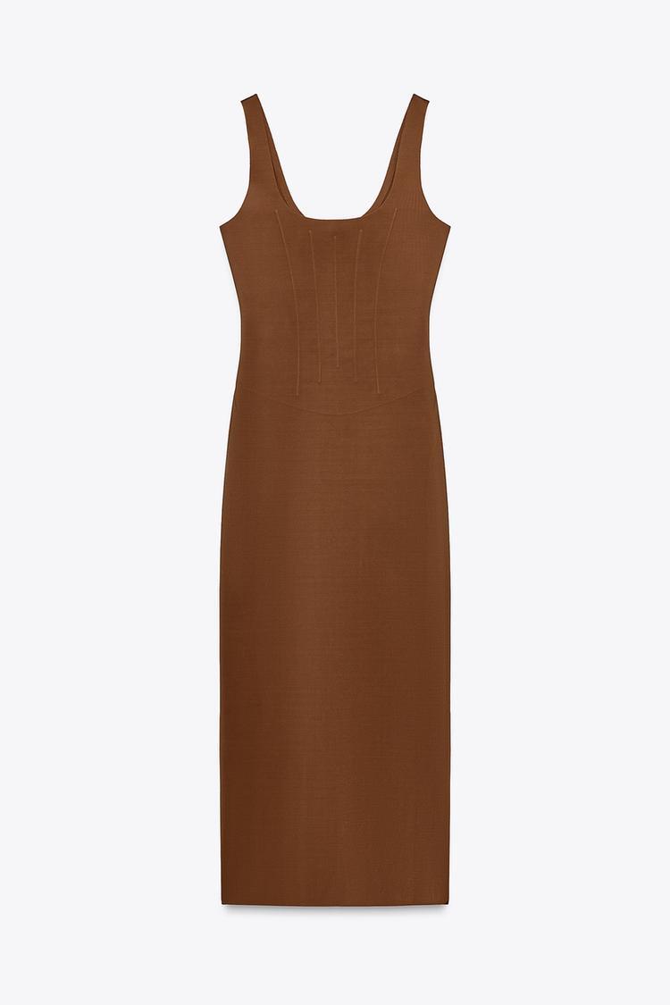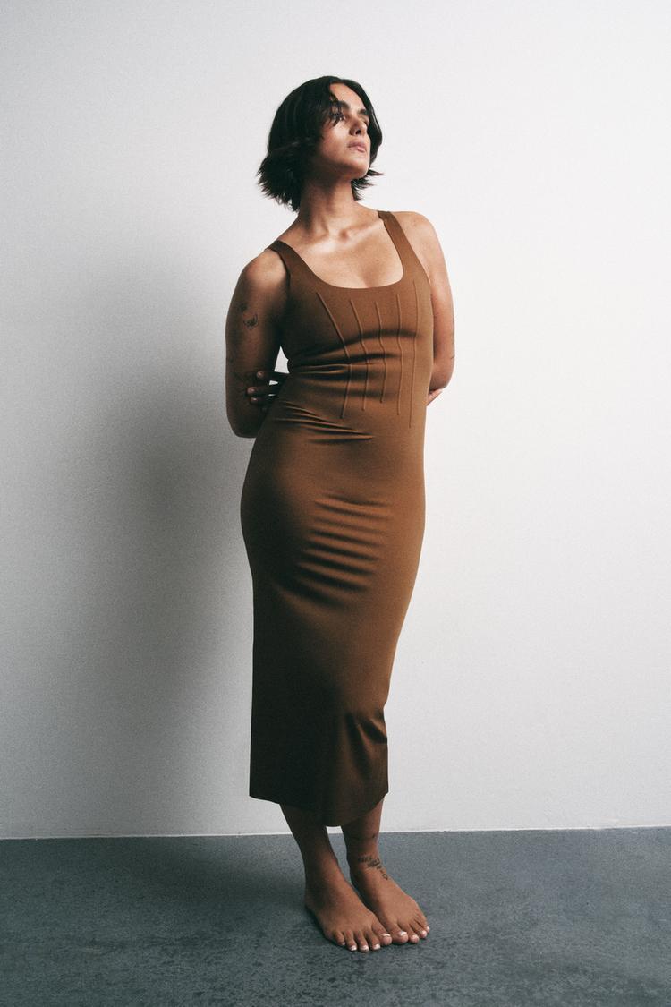 ZARA МОДЕЛИРУЮЩЕЕ ПЛАТЬЕ ИЗ СМЕСОВОГО ПОЛИАМИДА, СВЕТЛО-КОРИЧНЕВЫЙ