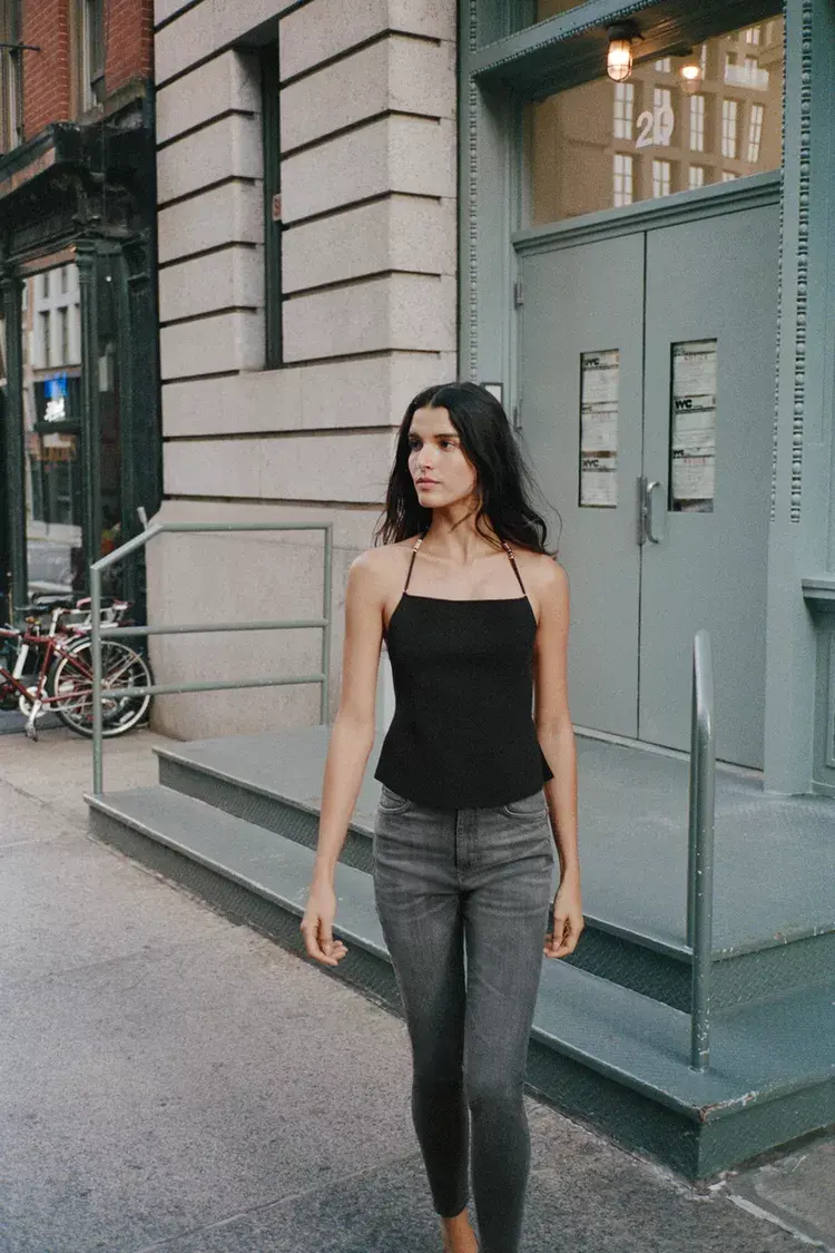 ZARA МОДЕЛИРУЮЩИЕ ДЖИНСЫ TRF С ВЫСОКОЙ ПОСАДКОЙ, АНТРАЦИТОВО-СЕРЫЙ