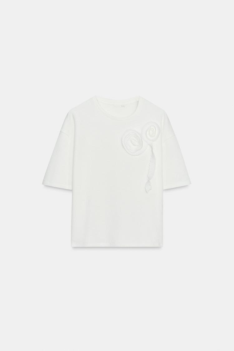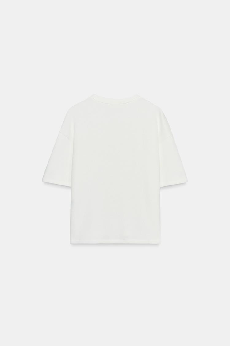 ZARA МЯГКАЯ ФУТБОЛКА FLOR, ЖЕЛТОВАТО-БЕЛЫЙ